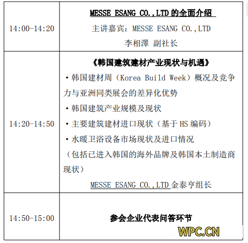 主辦單位:MESSE ESANG CO.,LTD 韓國建材展主辦方 四、參會(huì)人員 國內(nèi)各建材行業(yè)協(xié)會(huì)及有意開拓韓國建材市場、參與韓 國建材展的各類建材企業(yè)。